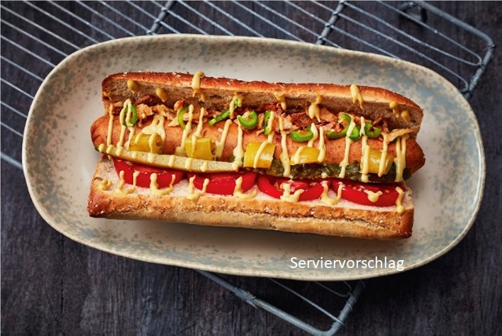 | Produktinformationen | Die Zeiten und Bedürfnisse ändern sich. – Aber Geschmack und Qualität bleibt die Grundlage. Sie möchten weniger Fleisch verzehren, Sie ernähren sich vegetarisch oder vegan? - Dann bieten wir Ihnen eine gute Alternative: Die Vegane Bockwurst nach Hot Dog Art. Angenehm in Textur und Biss und mit einer abgerundeten Gewürzkomposition abgeschmeckt. "VEGAN geht auch in lecker!" ;-) |